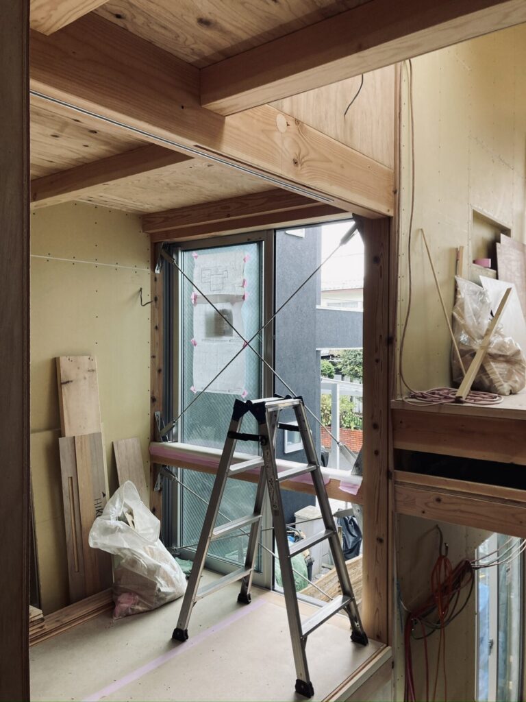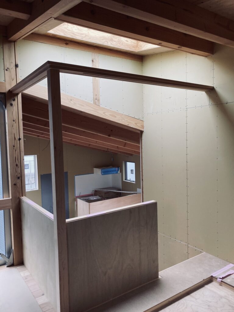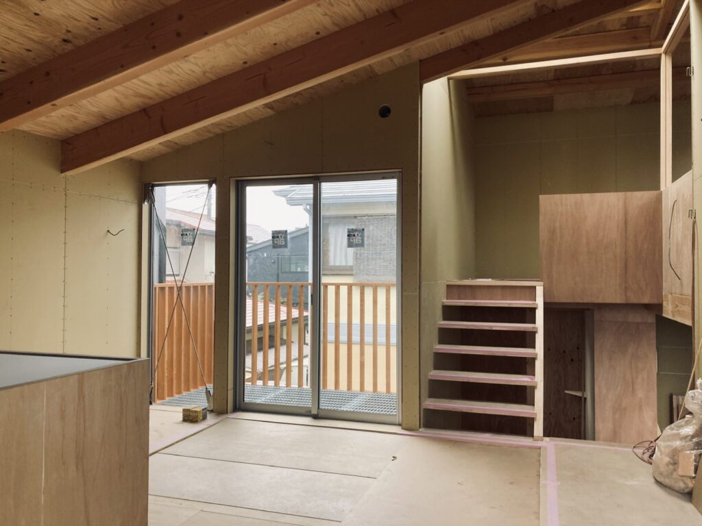 ガルバリウムの屋根は雨音が大きくなるので、今回は雨音対策として板金の下に制振テープを貼り、かつ野地板の上にビルボードと呼ばれる下地材を貼ることで雨音の軽減をはかりました。