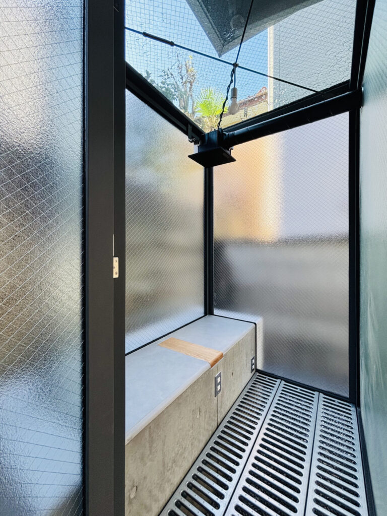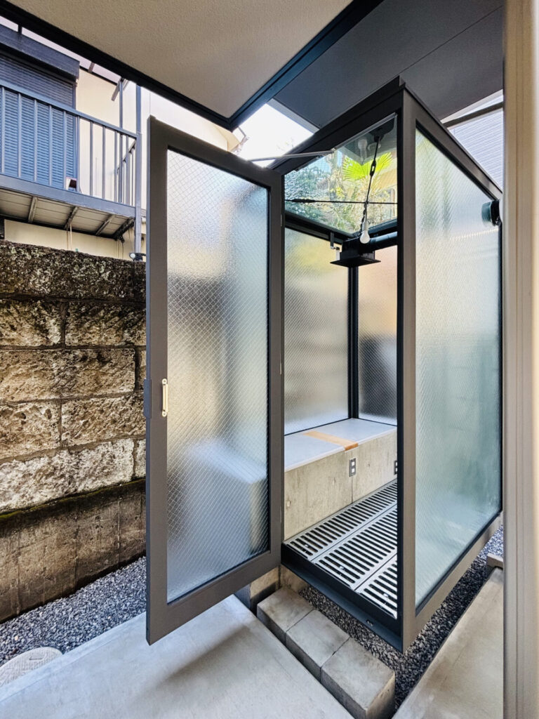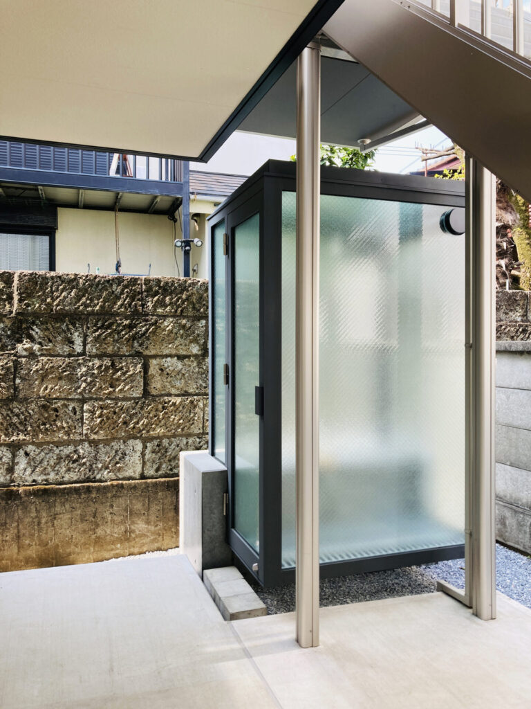 この建物は、マンションの敷地一角に建つ入居者専用の喫煙所です。