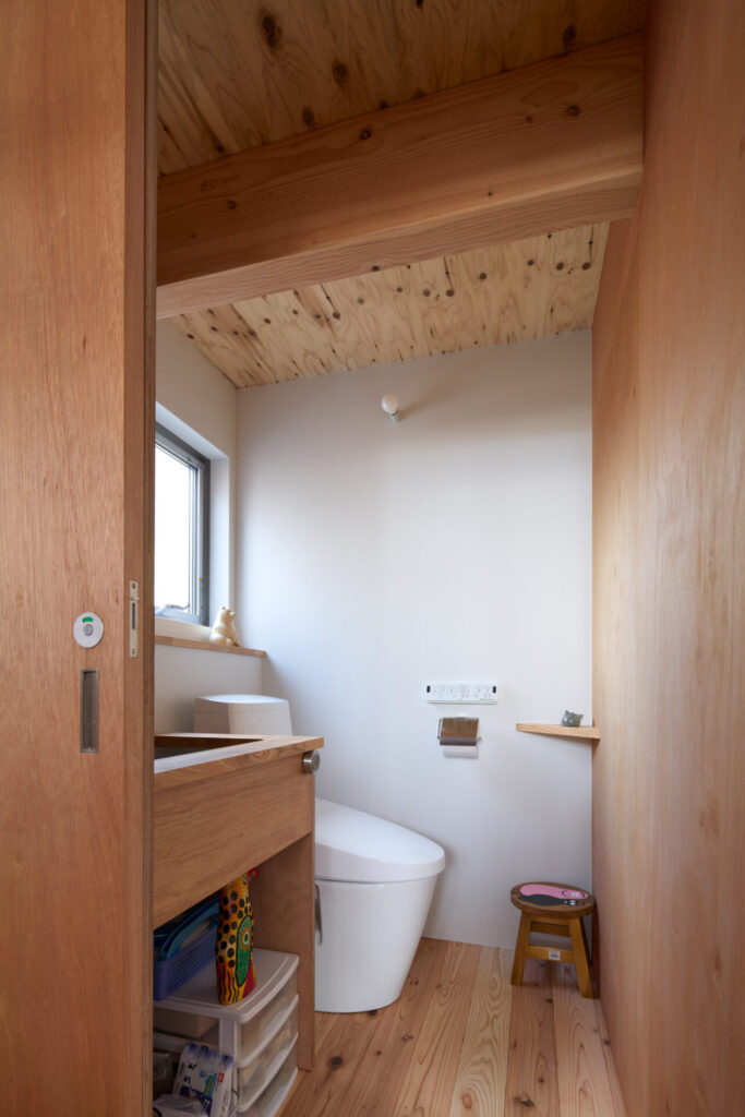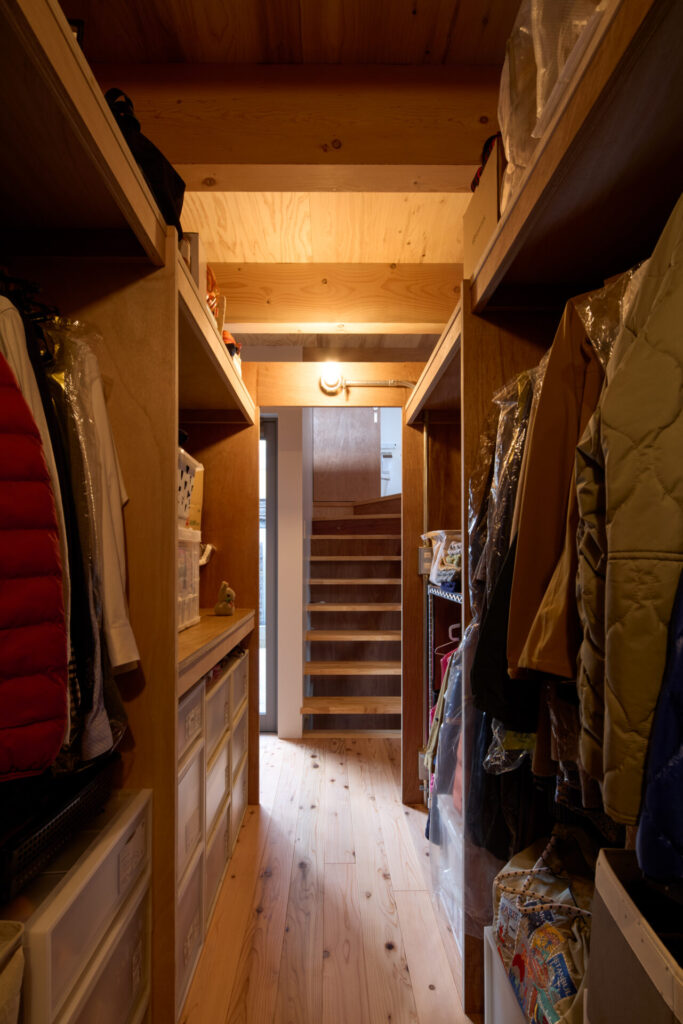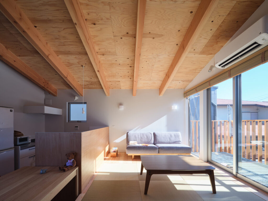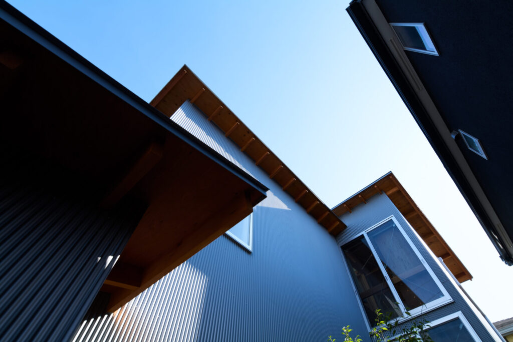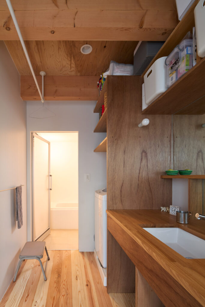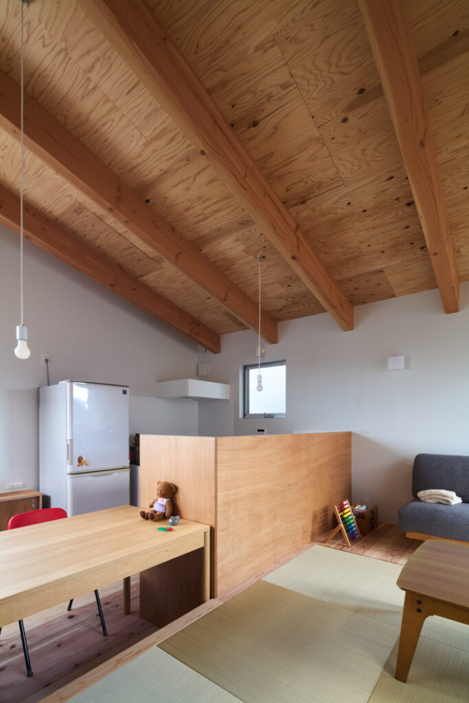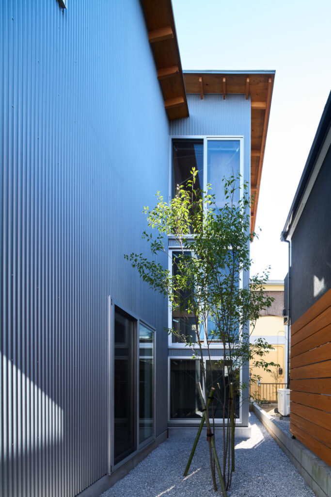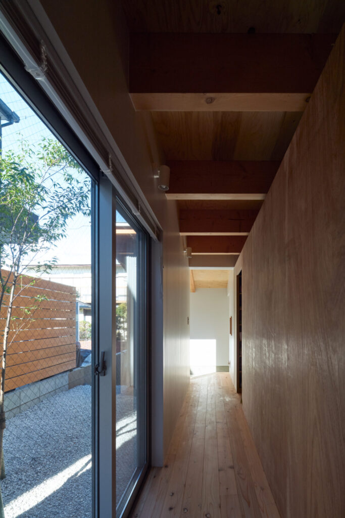 上下にずらすことでそれぞれの階を分断することなくつなげ、左右にずらすことで各々の部屋に明るさと眺望を確保しています。上階と下階、外と中が有機的に繋がり混じり合うことで、面積以上の広さを感じる事ができる住まいを目指しています。